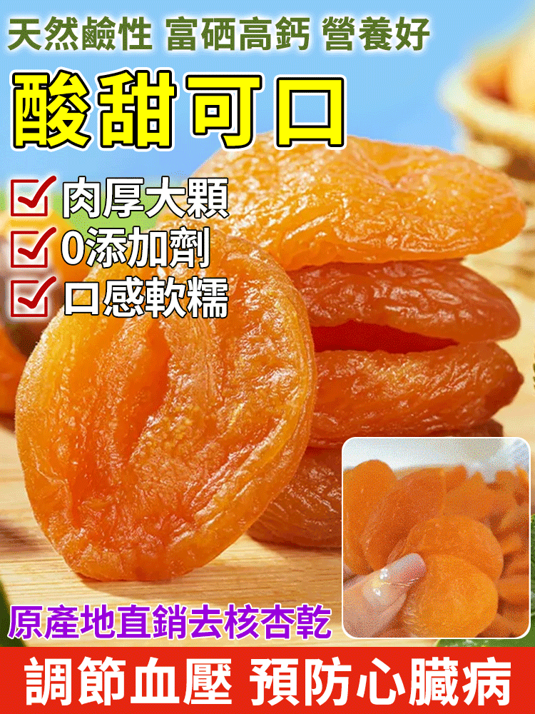 - 【香甜軟糯】無添加無核紅杏干 NT$1199 调节血糖!预防心脏病!开胃健脾!火爆熱銷中!24小時在線客服,售後無憂!